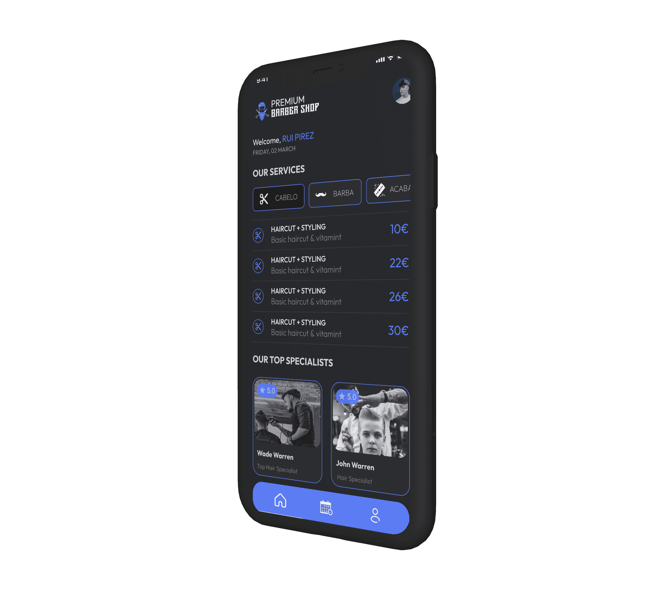 I led the end-to-end design process of a barbershop booking app, translating